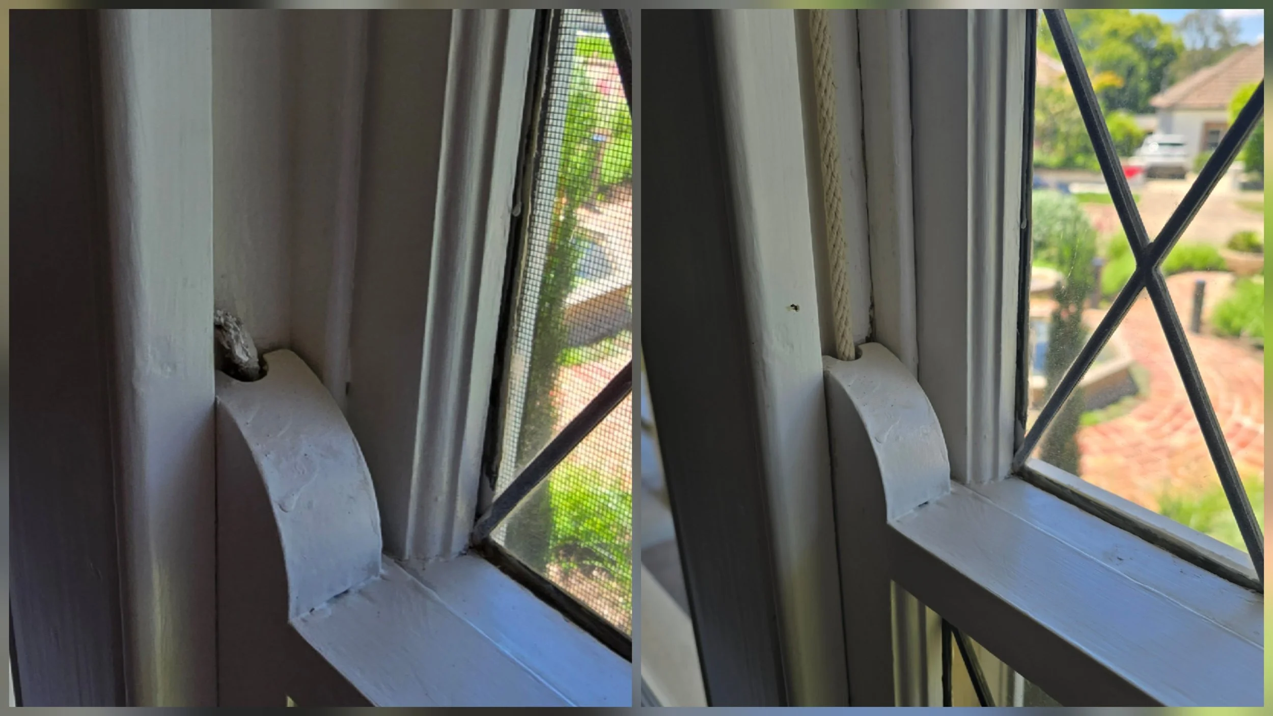 The bottom corner of this window as rotten from the sprinklers hitting it.