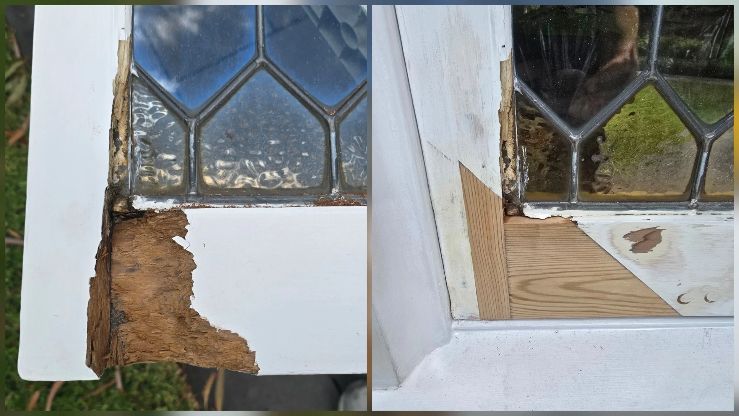 Rotten timber was cut out and new timber was cut to fit